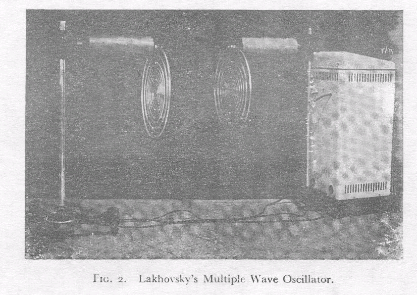 Water Ozonator Georges Lakhovsky The cells of disease causing organisms within an infected person, produce different frequencies than that of normal, healthy cells. For people or plants suffering from disease conditions, Lakhovsky found that if he could increase the amplitude (but not the frequency) of the oscillations of healthy cells, this increase would overwhelm and dampen the oscillations produced by the disease causing cells, thus bringing about the demise of the disease causing cells trying to set up shop in the body. If he pumped up the amplitude of the disease causing cells, their oscillations would gain the upper hand and cause the person or plant to become weaker and more ill. Lakhovsky viewed the progression of disease as essentially a battle between the resonant oscillations of host cells versus the oscillations emanating from pathogenic organisms. Whereas Rife determined the resonant frequency of the microbe, and then radiated the microbe with that frequency until it self destructed, Lakhovsky's approach was to transmit to the body as many frequencies and their harmonics as possible. Each cell would respond to that one frequency nearest its resonant frequency; the amplitude was not so high that it would cause the cell to self-destruct, but would apparently increase the strength and vigor of the cell. For more details, see here.